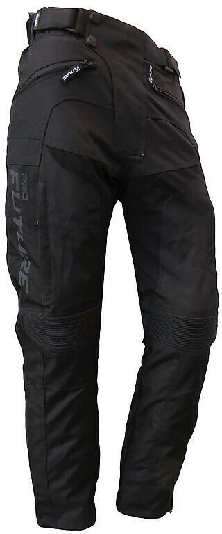 ProFuture Scorpion Pants: pantaloni tecnici da moto 3 in 1 per tutte le stagioni. Innovativo sistema con imbottitura removibile antipioggia e antifreddo. Tessuto antistrappo e protezioni CE removibili su ginocchia e fianchi per la massima sicurezza. Design ergonomico per un comfort ottimale. Caratteristiche: inserti rifrangenti, tasche con zip, regolazioni in vita e caviglie, zip di connessione alla giacca.